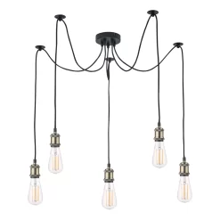 Wharfdale 5lt Pendant Satin Chrome Copper Detail Glass Shades