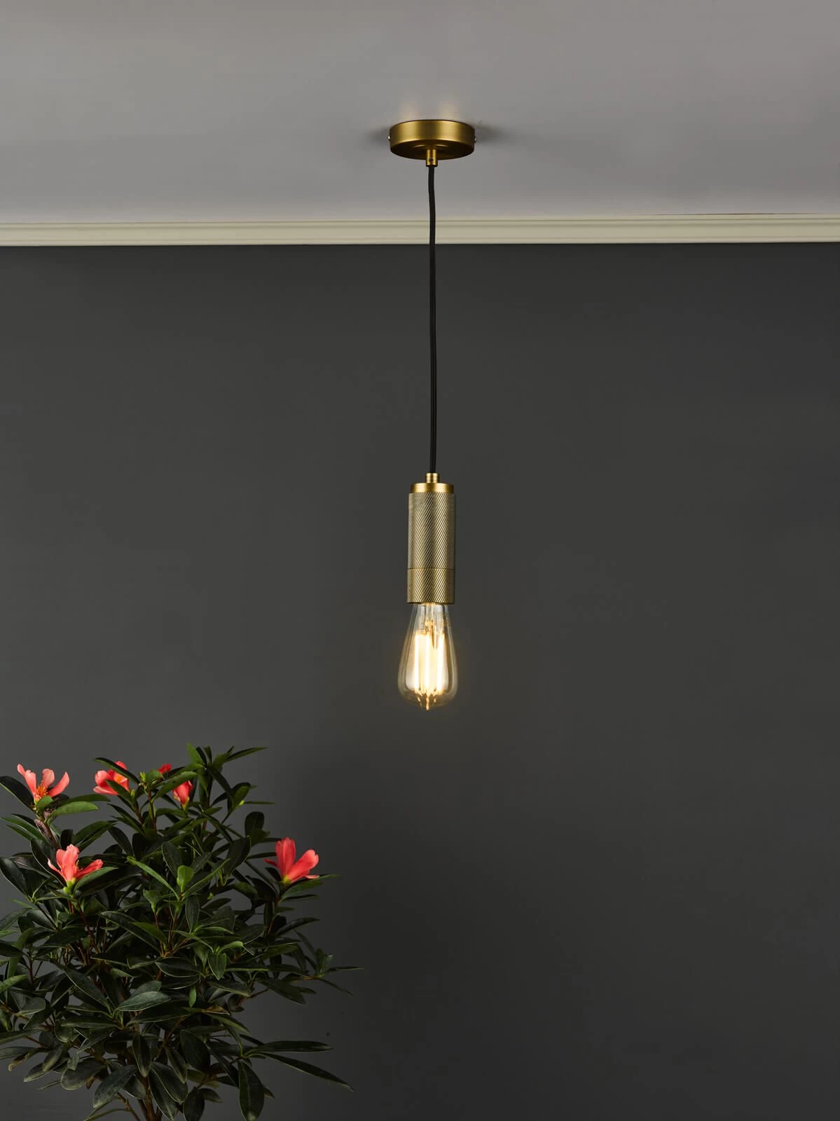 The Single pendant in aged brass is a perfect example of the refined industrial style, inspired by industrial lighting using a rich pallet of materials and finishes. Featuring a wonderfully heavy machined lamp holder with a contemporary single knurling and an aged brass finish. It can be finished with a glass shade from our easy fit range or simply used to great effect with our vintage lamps.