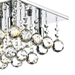 The ABACUS 4lt Flush fitting in polished chrome, features a multitude of clear crystal glass droppers and comes fully assembled for efficient installation