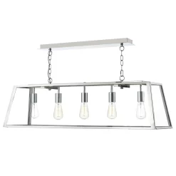 The ACADEMY 5lt bar pendant has a stainless steel ceiling plate and frame with clear glass panels. Perfect for use over kitchen islands or dining room tables and looks especially good when used in conjunction with vintage style lamps, available to buy separately.