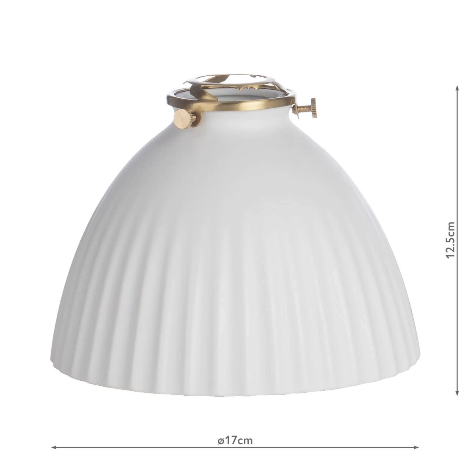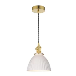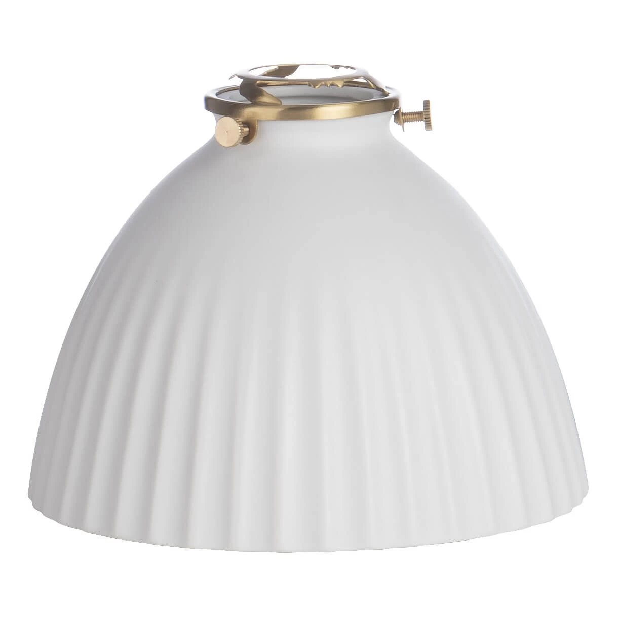 The Hadano Domed Ribbed Porcelain Shade is designed to fit our extensive Hadano range of suspensions, including 3 light bar, single pendant or wall light in aged brass on antique chrome. This slip-cast ribbed shade is made of porcelain which is slightly translucent, allowing a comforting warm glow from the outside while lit and focusing light downwards. The shade features a natural brass gallery which fits an E14 lamp holder.