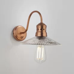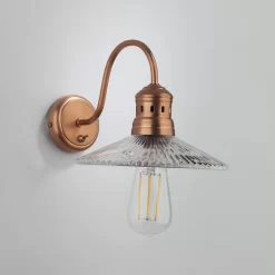ADELINE β with brushed copper metal work and pressed glass shade this looks like itβs come straight from a quaint French farmhouse kitchen. Works great paired with our Rustika or Globe LED filament lamps. This wall lamp comes complete with an on/off toggle switch in matching copper finish.