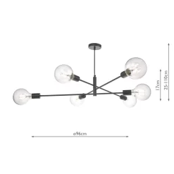 With a diameter of almost 1 metre and adjustable from 25 to 120cm in height, the Alana six-light pendant can make a strong statement in rooms with both low and high ceilings. Finished in matt black for an authentic industrial look.