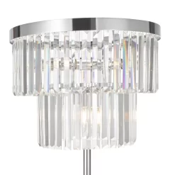 The Angel 6 light floor lamp is a cascading waterfall of bevelled crystal suspended from a polished chrome frame. The grand proportions and show-stopping crystal make the Angel floor lamp a remarkable statement piece on its own or can be used to complement the rest of the extensive Angel range.