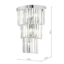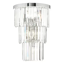 The Angel 6 light wall light is an oversized wall light featuring a cascading waterfall of bevelled crystal suspended from a polished chrome frame. The grand proportions and show-stopping crystal make the Angel wall light a remarkable statement piece on its own or can be used to complement the rest of the extensive Angel range.