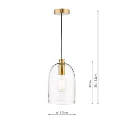 The Archie single pendant features a clear glass cloche shade with a bronze lamp holder and detailing for a classical look. It can be used as a single pendant but looks great when used in a series of 2 or 3 over a dining table or kitchen island