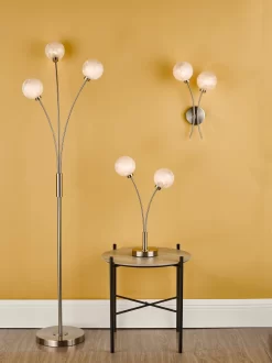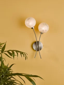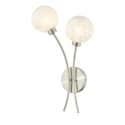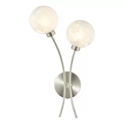 The AVARI 2lt wall light in satin nickel and frost effect glass. The frosted glass effect gently diffuses the light, giving a cosy, homely feel. We find it works great in the bedroom mounted just over the bedside table and the pull cord switch is convenient to reach from the bed.