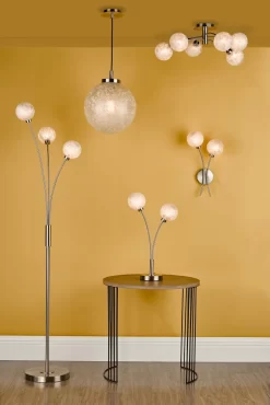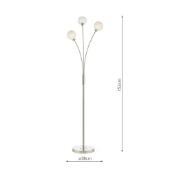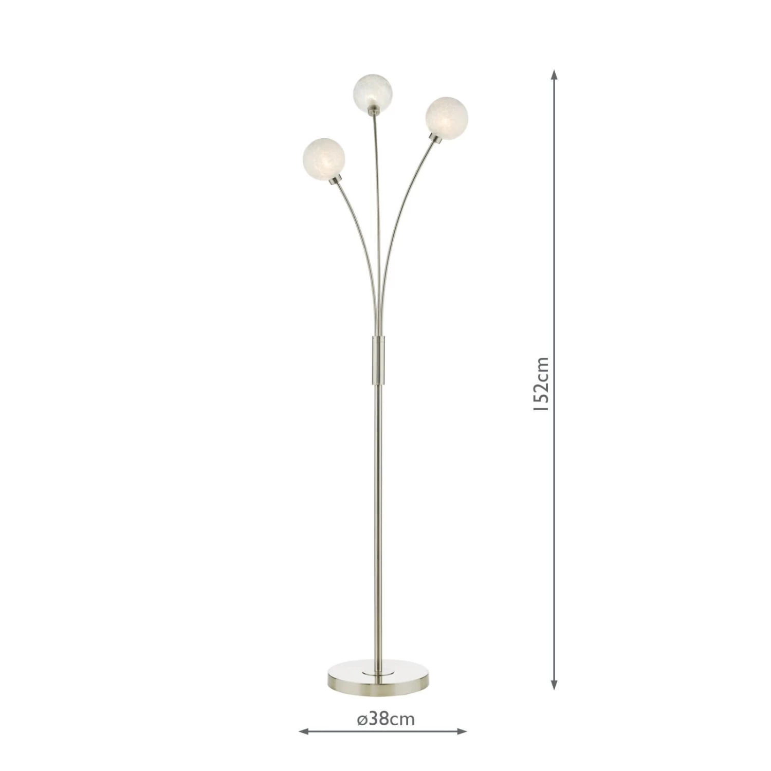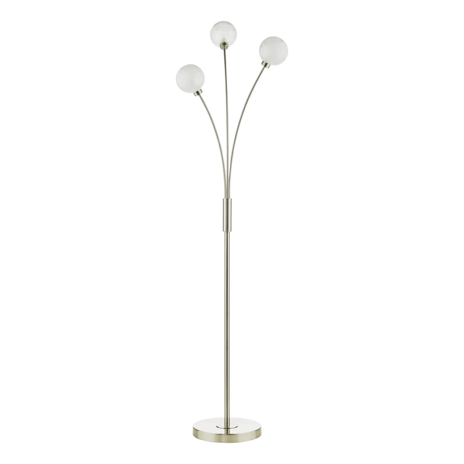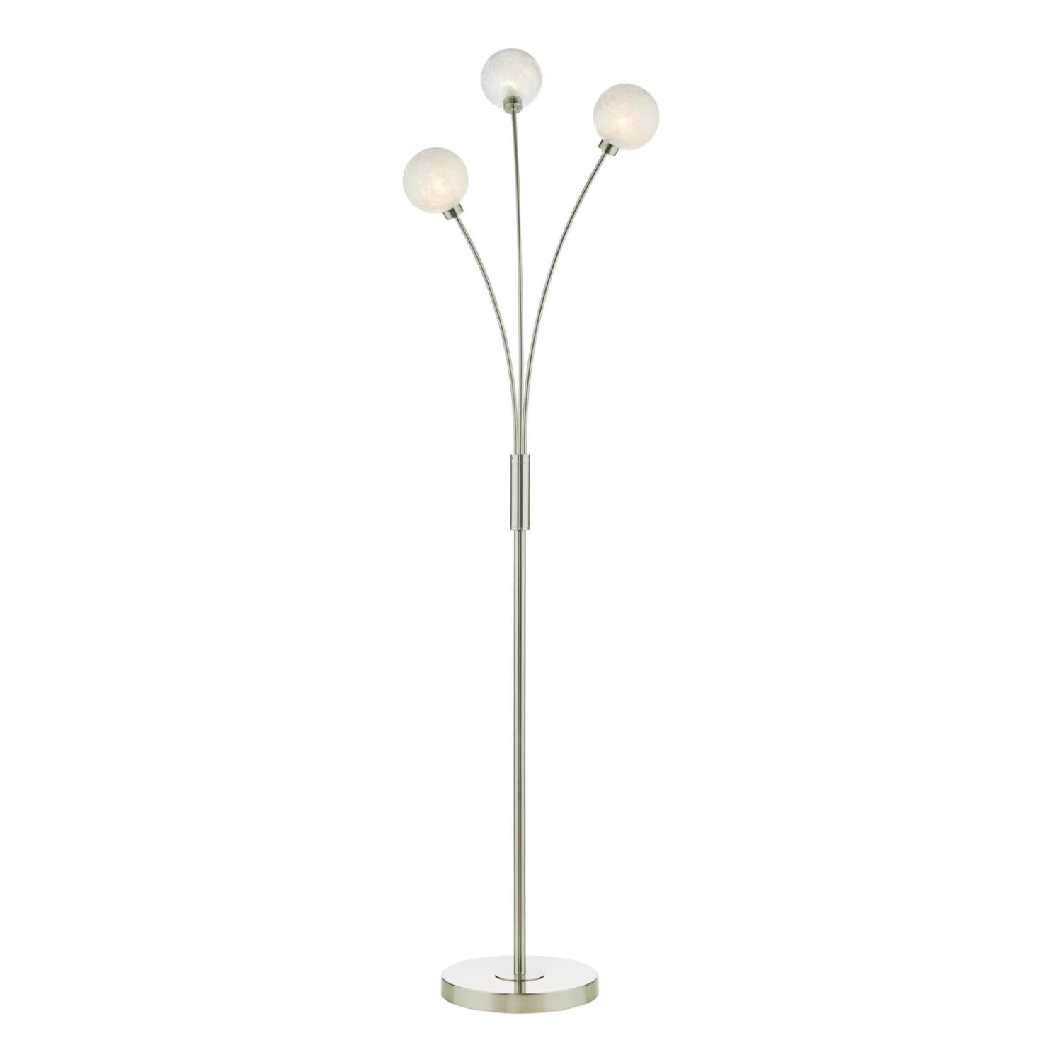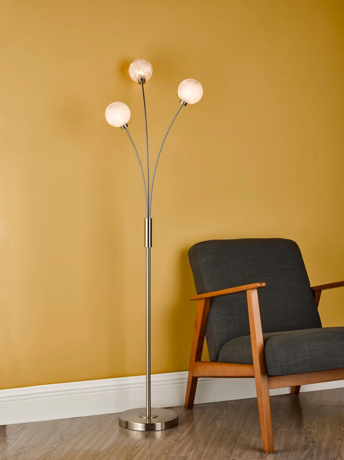 The AVARI 3 light floor lamp in a satin nickel finish and frost effect glass shades. The frosted glass gently diffuses the light, which makes this a perfect floor lamp for adding a bit of ambient mood lighting to your living space.