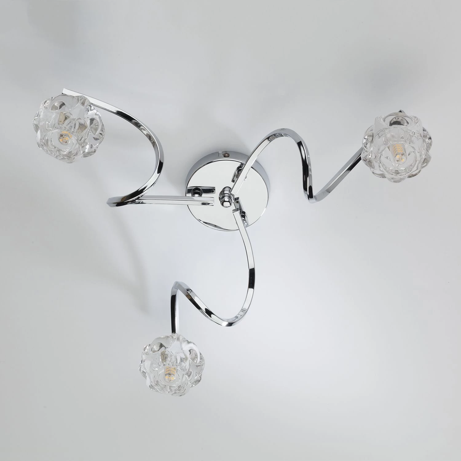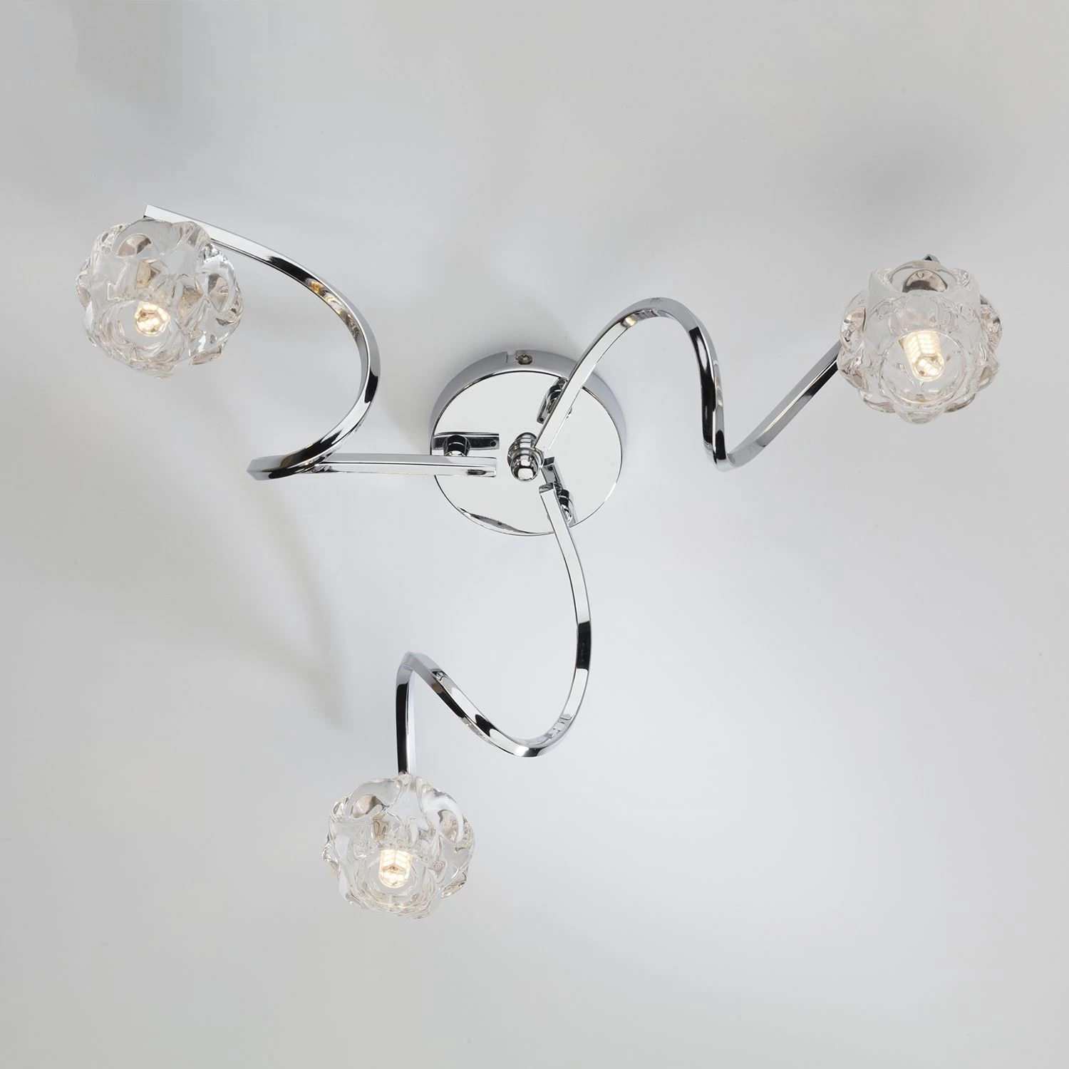 The BABYLON 3lt Semi Flush features a polished chrome frame and decorative faceted crystal glass shades.