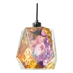 The Baxley easy-fit Pendant Light is a quick and easy way to change the look of a room without an electrician. Its irridised glass scatters light in a dazzling display, reflecting different hues from every angle. Fitting any standard E27 (ES) suspension, the Baxley pendant comes supplied with a metal reducer ring, so you can use your existing B22 or SES ceiling rose and flex. Ideal for creating an enchanting focal point, this pendant light works beautifully on its own or grouped together using our range of We recommend using LED filament lamps from our range of decorative suspensions and cluster fittings.