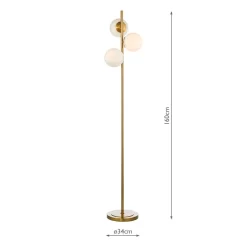 The Bombazine 3 light floor lamp is part of our hugely popular mid-century inspired Bombazine collection. Three oversized opal globes are positioned around a vertical stem and simple cylindrical base. Fitted with a black braided cable and foot operated switch; the Bombazine floor lamp can be used with the rest of the Bombazine range or used alone as a statement floor lamp in the lounge or bedroom.