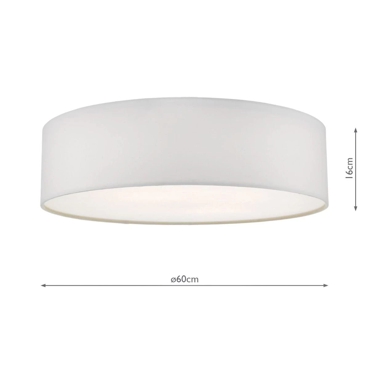The minimalistic Cierro flush 4-light features a round drum shade with a frosted acrylic diffuser that produces a lovely soft light when lit.