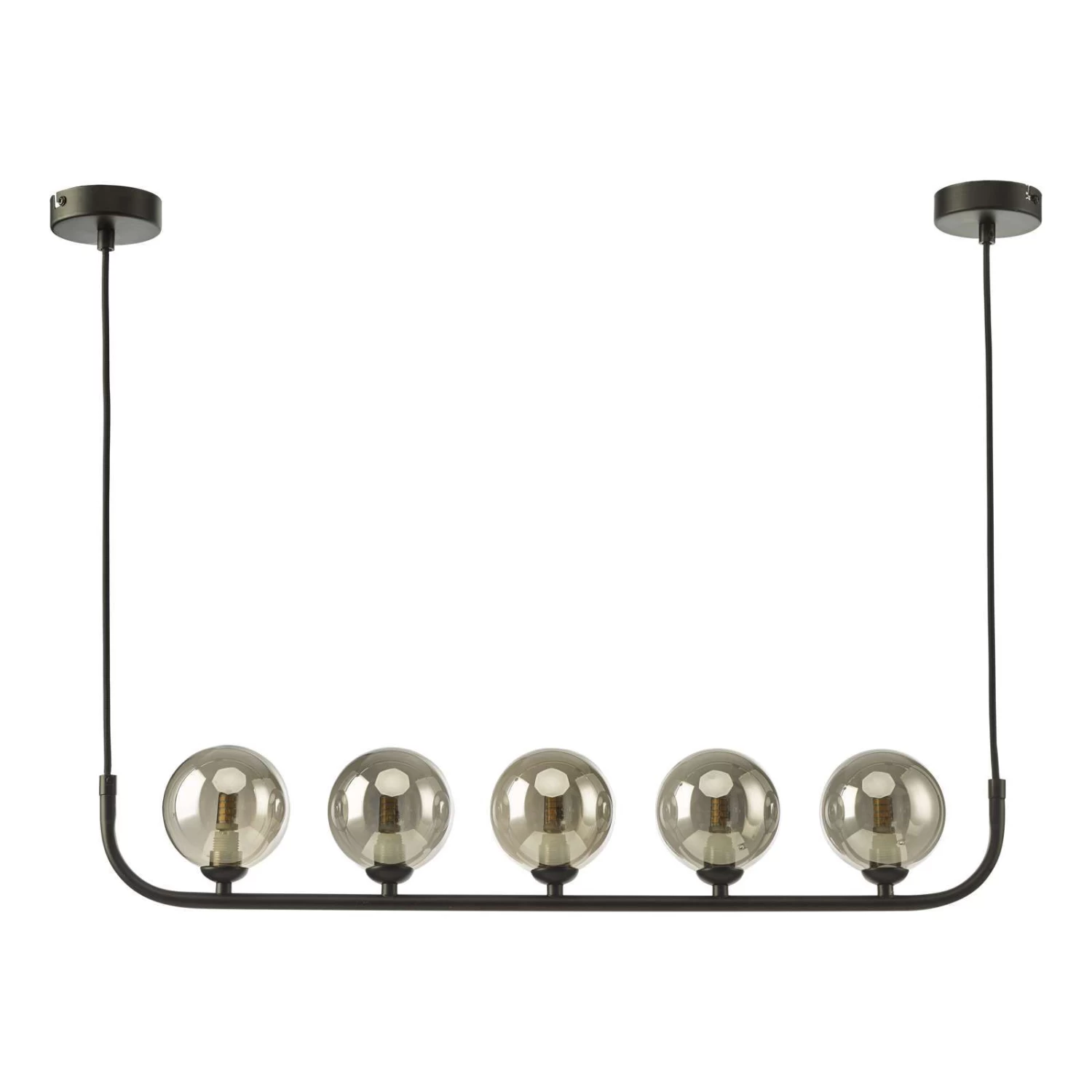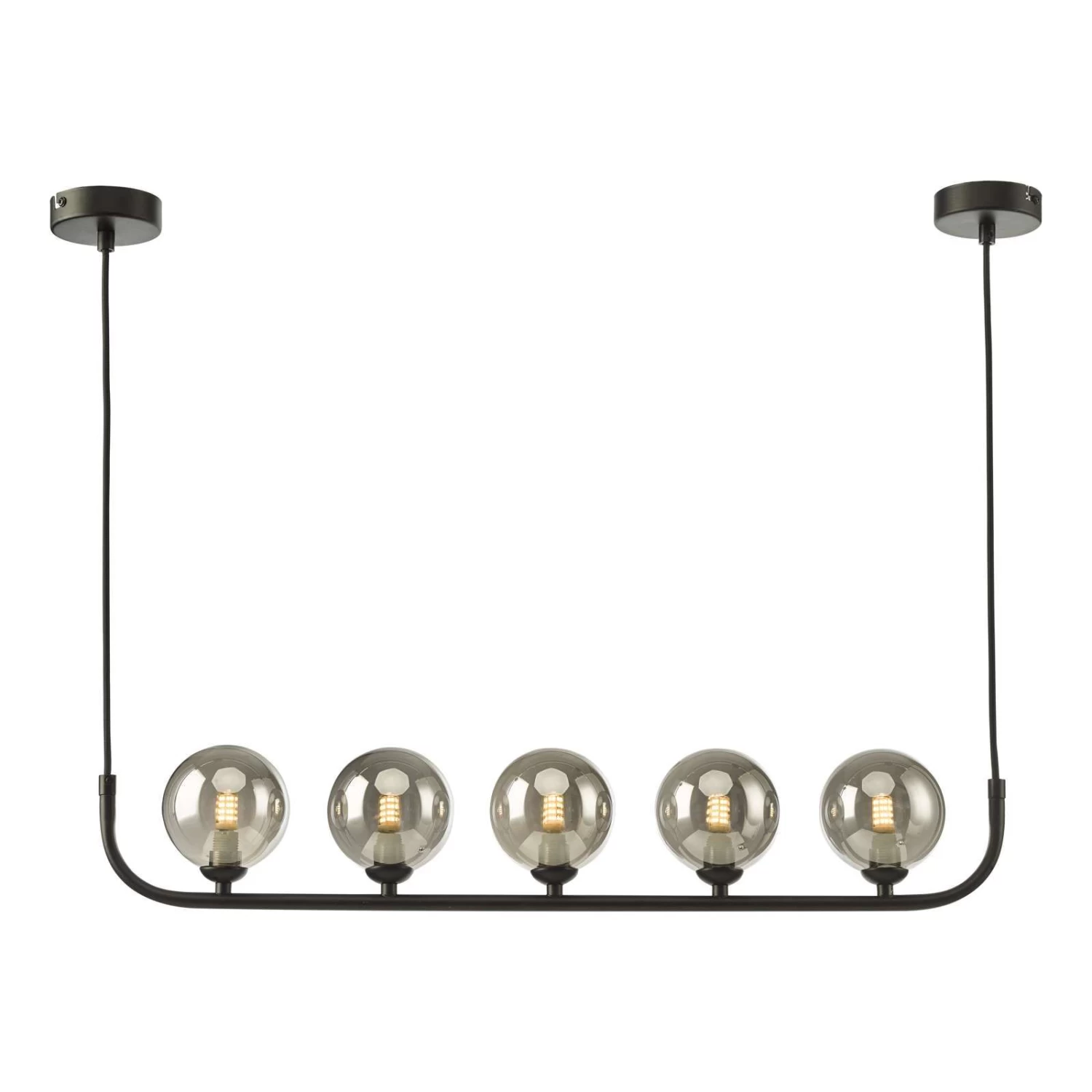 The Cradle 5 light bar pendant is a exercise in modernist design. It is notable for the simplicity of its well-proportioned radius arms, teamed with glass orbs that appear to balance, breathtakingly, on the fine tubing. The linear 5 light pendant make it perfect for use in a modern kitchen interior or over a dining table.