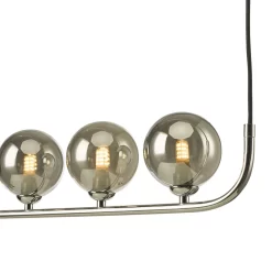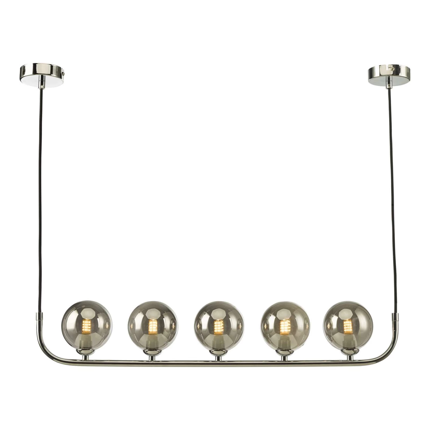The Cradle 5 light bar pendant is a exercise in modernist design. It is notable for the simplicity of its well-proportioned radius arms, teamed with glass orbs that appear to balance, breathtakingly, on the fine tubing. The linear 5 light pendant make it perfect for use in a modern kitchen interior or over a dining table.