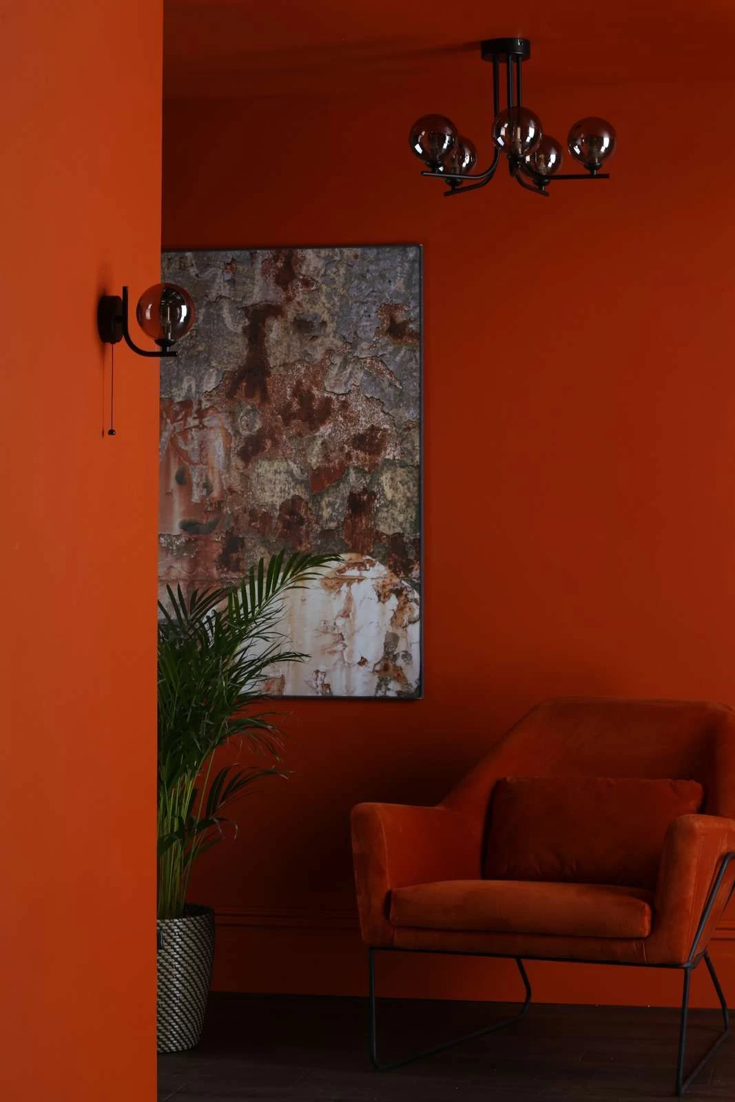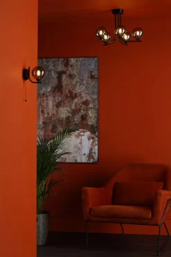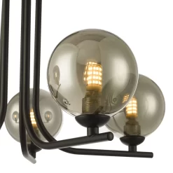 Shown here in black with smoked mirror glass, the Cradle range is also available in polished chrome. The complete range features a complementing 5 light bar pendant and a single wall light.