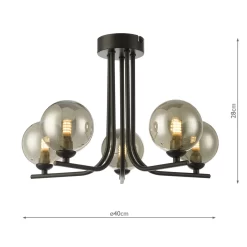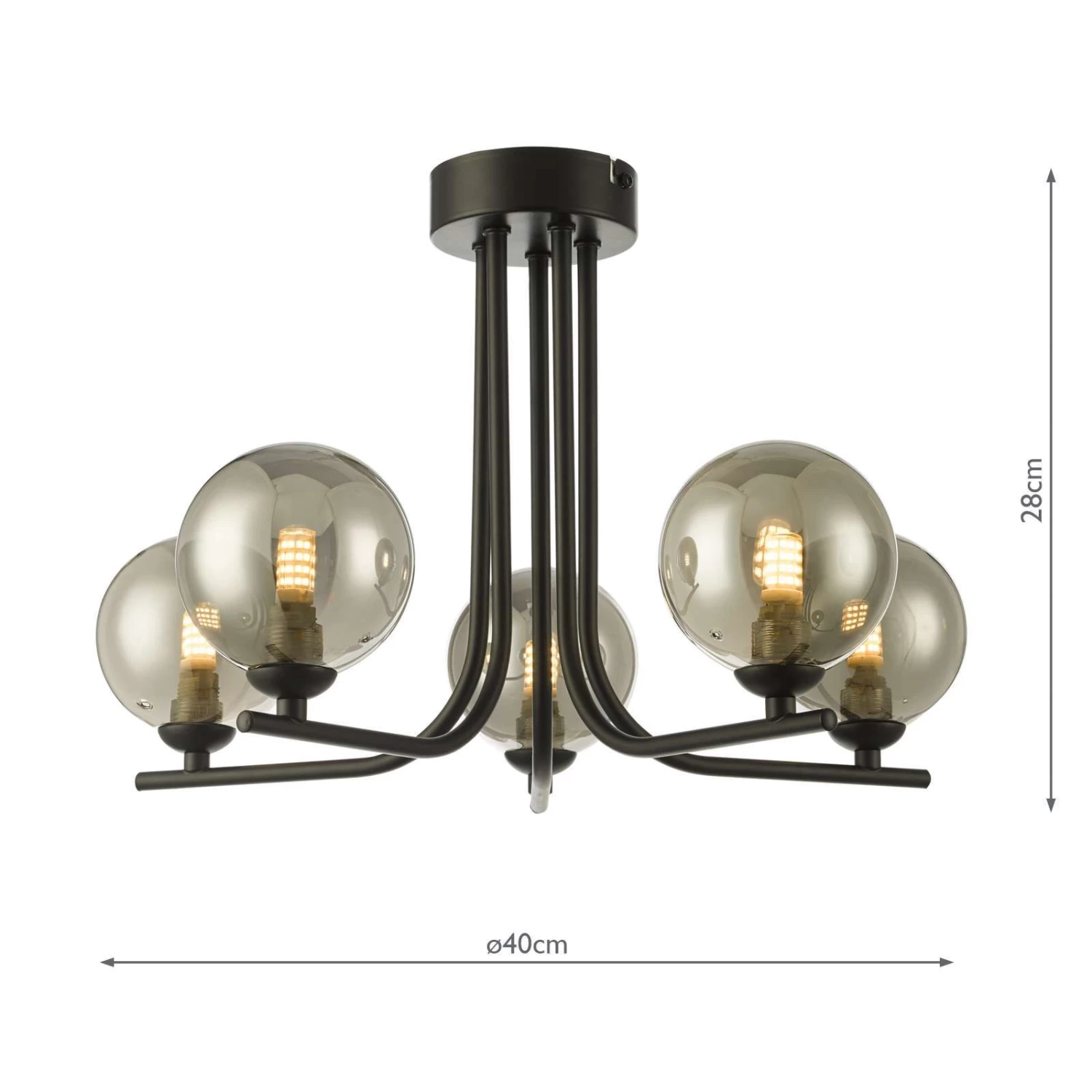 The Cradle 5 light semi-flush ceiling light is a exercise in modernist design. It is notable for the simplicity of its well-proportioned radius arms, teamed with glass orbs that appear to balance, breathtakingly, on the fine tubing.