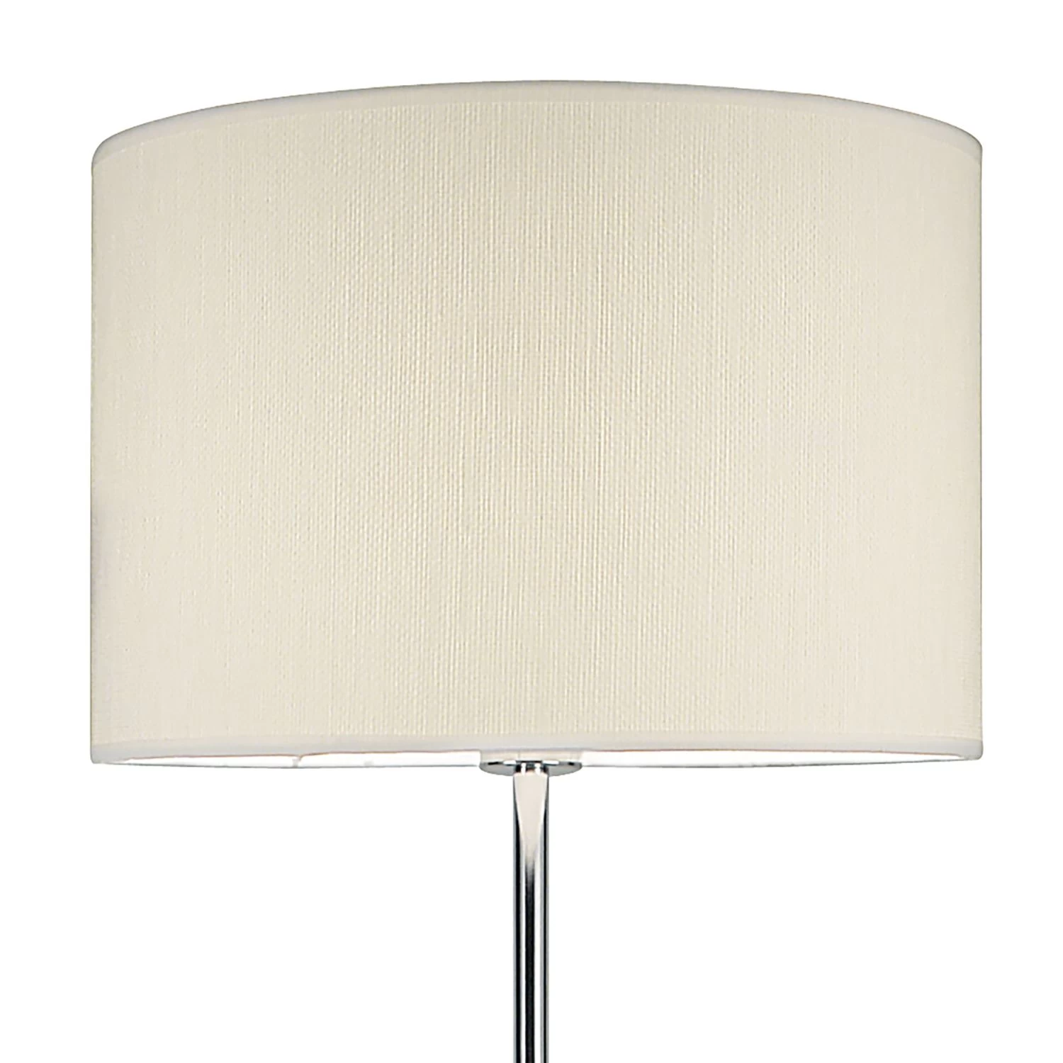 The Delta floor lamp has an elegant retro inspired tear organic base in polished chrome. Comes complete with a co-ordinating ivory cotton drum shade. Fitted with an cable mounted foot switch for ease of use.