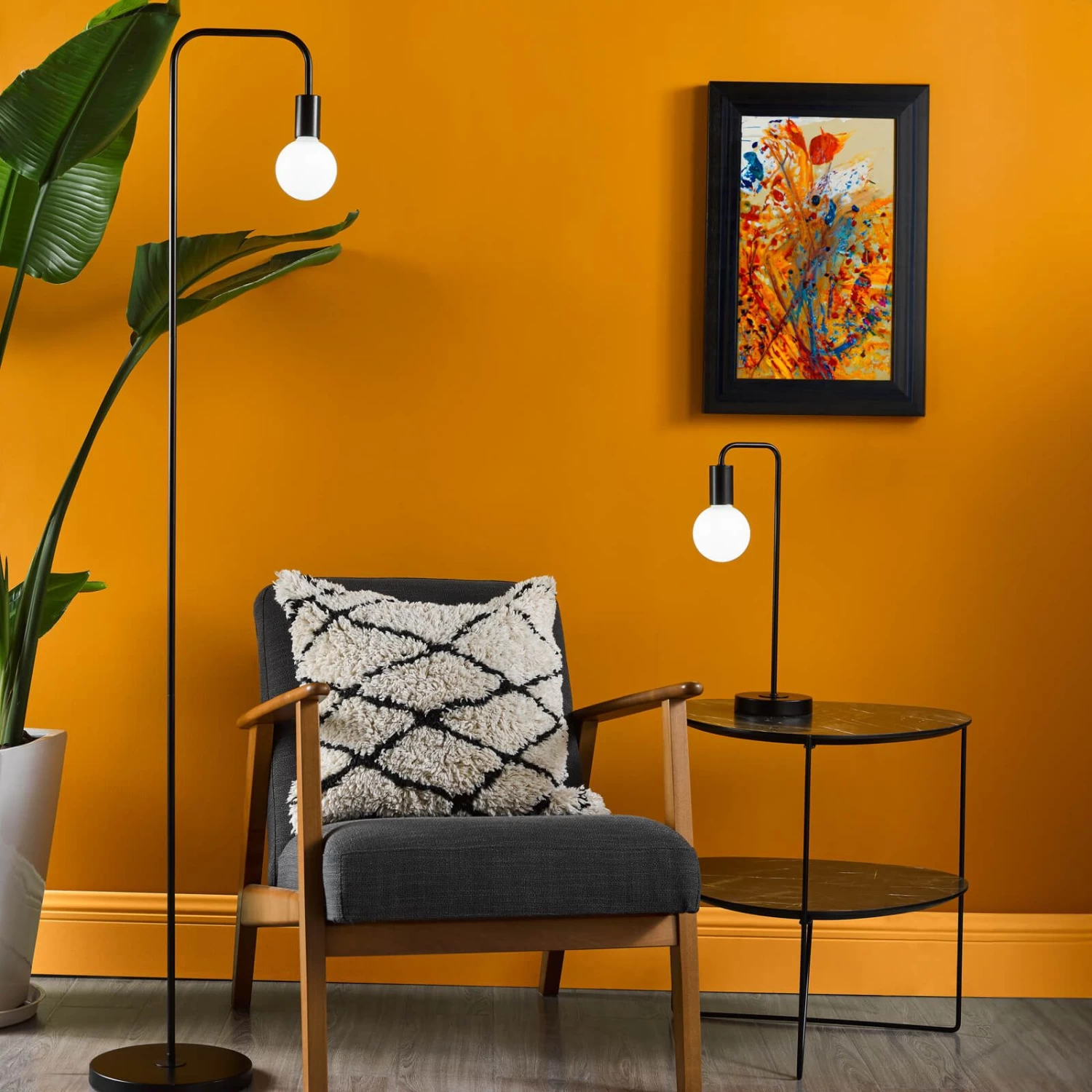 The Dena Floor Lamp from dar lighting offers a simple yet striking design to add a touch of contemporary style to your space. The Dena table lamp features a matte black finish with a slimline profile and minimalist lines for a look that blends seamlessly into any setting. Shown with a white opal light bulb (sold separately), but change the look with our vintage filament light bulbs. The Dena lamp takes a single E27 (ES) bulb (not supplied), We recommend using LED filament lamps from our range of LED bulbs