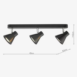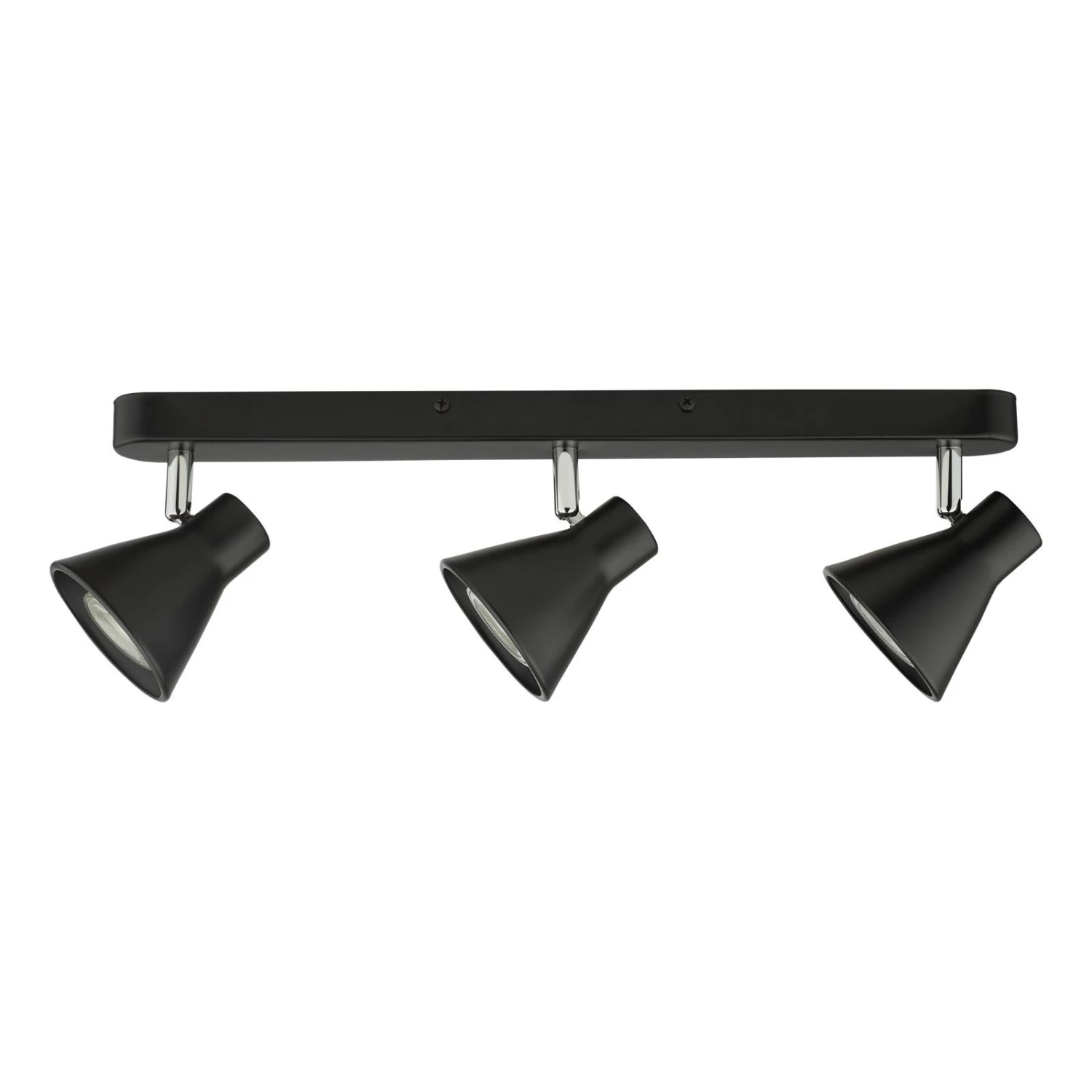 The contemporary Diza 3 light bar spotlight is finished in matt black with polished chrome detailing. The metal heads are individually adjustable to enable the light to be directed to just where it is required.