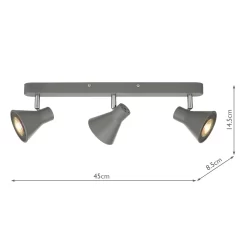 The DIZA 3 light Bar Spotlight Ceiling Light is finished in matt mid grey with polished chrome detail. Each head is fully adjustable to enable the light to be directed to just where it is required.