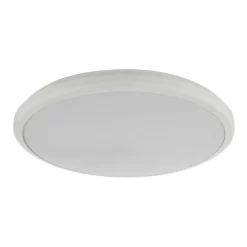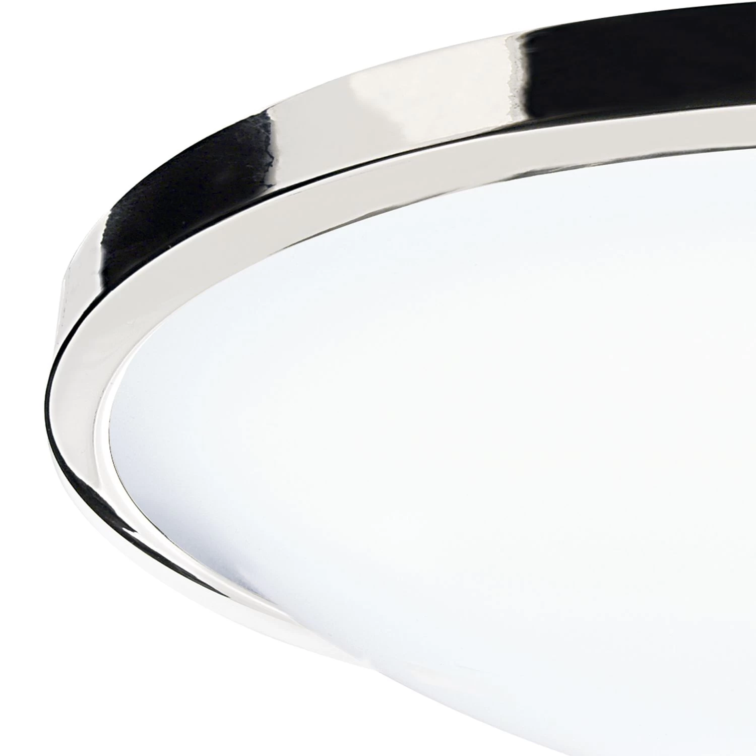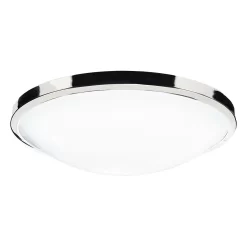 The DOVER bathroom flush has an opaque white acrylic shade set within a polished chrome frame.