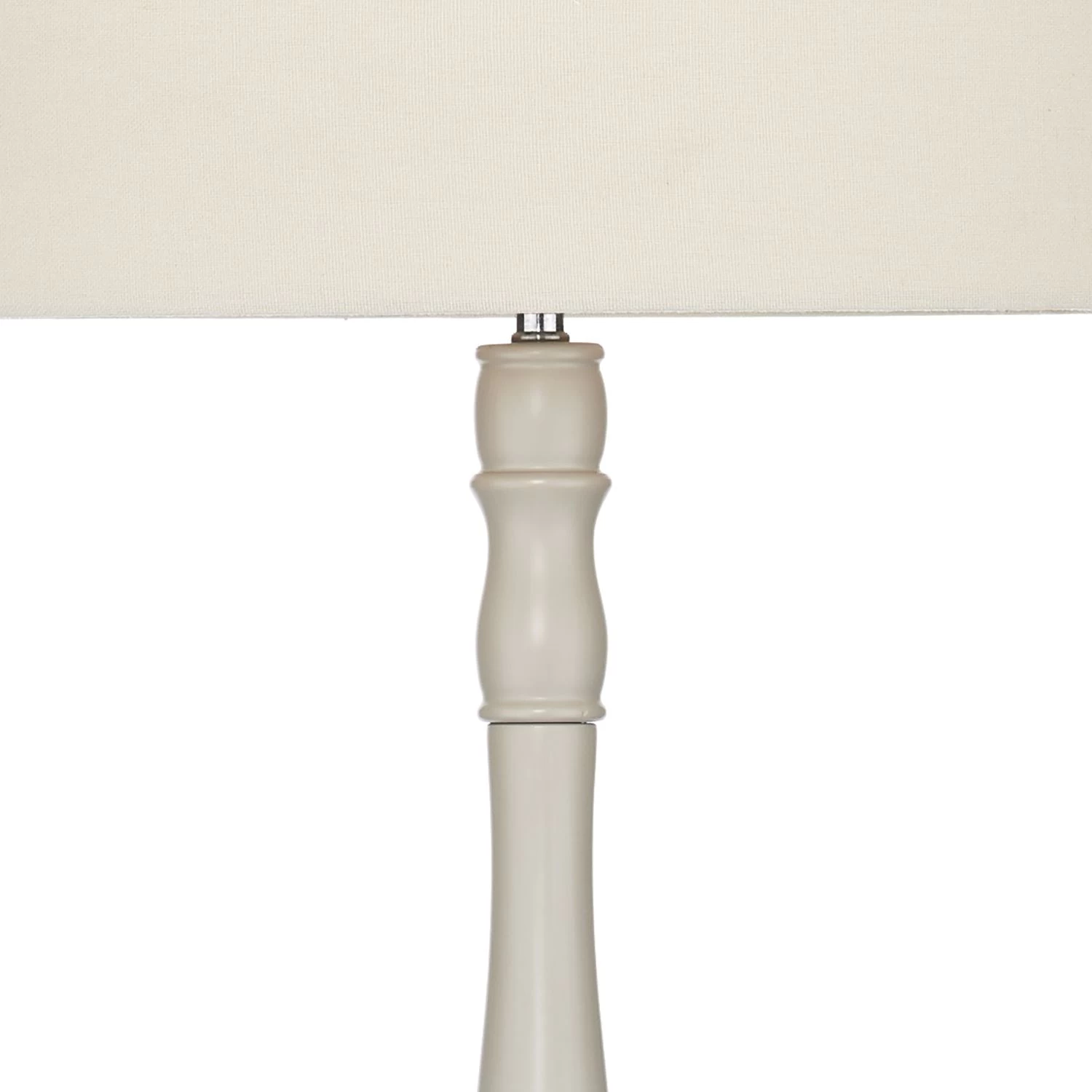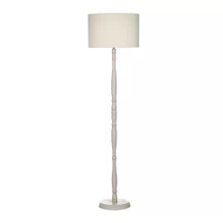 The DUNLOP Floor Lamp has a traditionally styled putty finish base and cream linen shade.