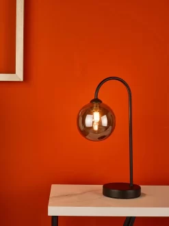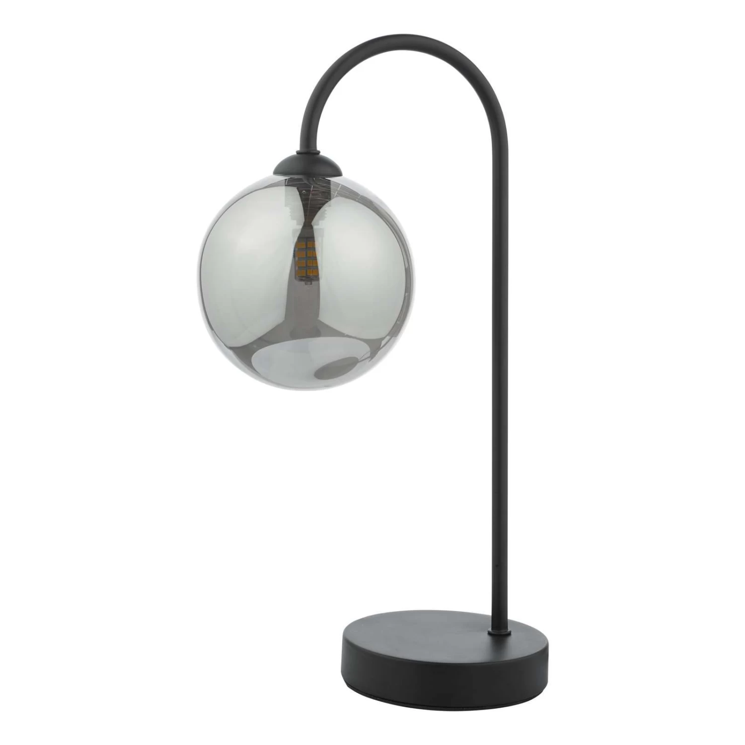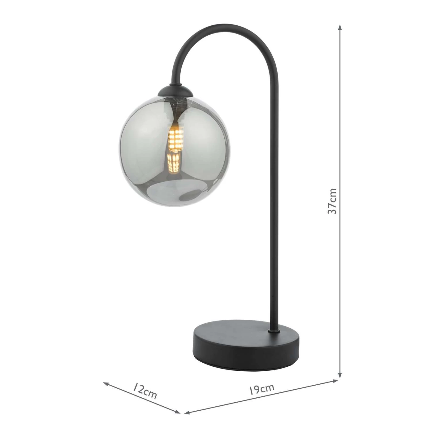 The Eisse touch table lamp in matt black with smoked glass follows the current geometric minimalist design trend with a large radius neck leading to a beautiful mirror smoked glass. The Eisse touch lamp features a special switch with makes the all the metal of the lamp act as an on/off switch. Simply tap the metal part of the lamp to turn it off or on. Making it ideal as a bedside or desk lamp.