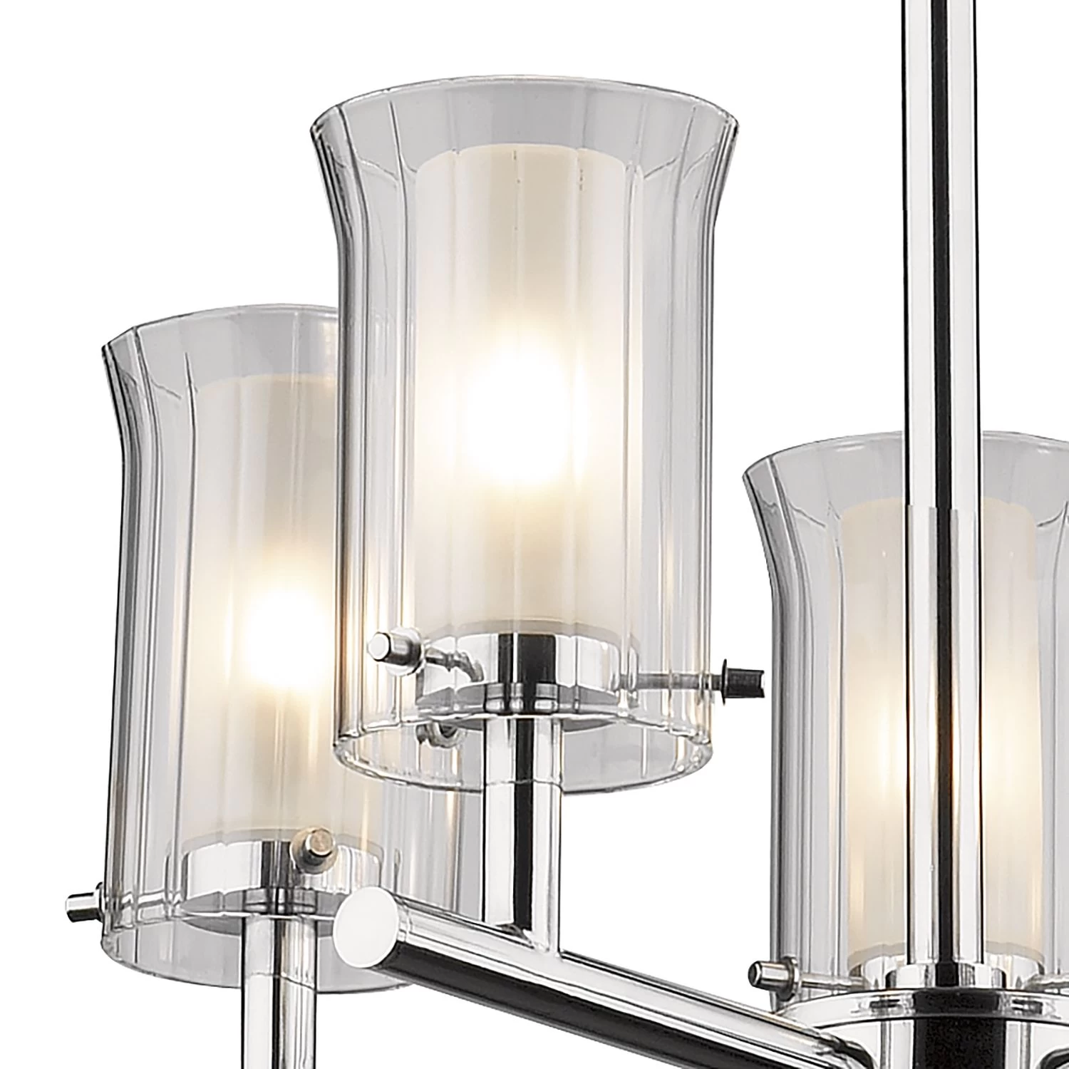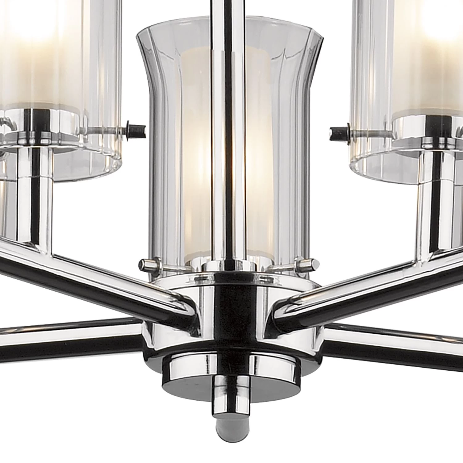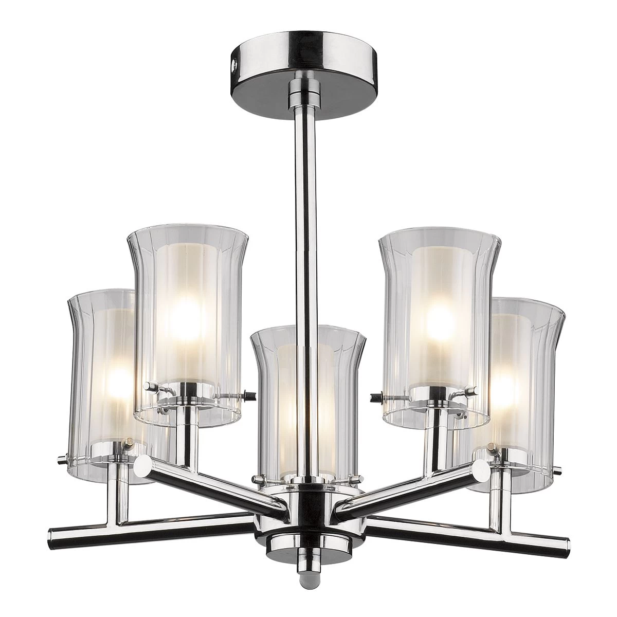 The ELBA 5lt Semi Flush bathroom IP44 light features a polished chrome frame and ribbed clear outer frames with a frosted inner glass shade.