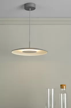 This super-sleek, shallow pendant with a smart grey and stainless steel finish, the ultra-contemporary Enoch ceiling light with bring your living area right up to date.