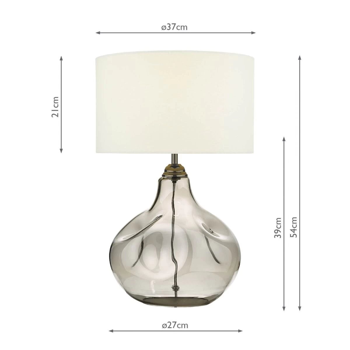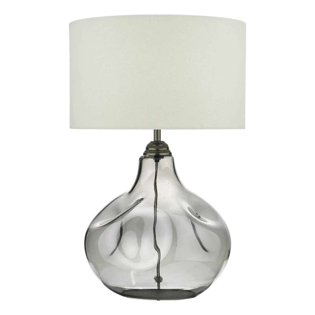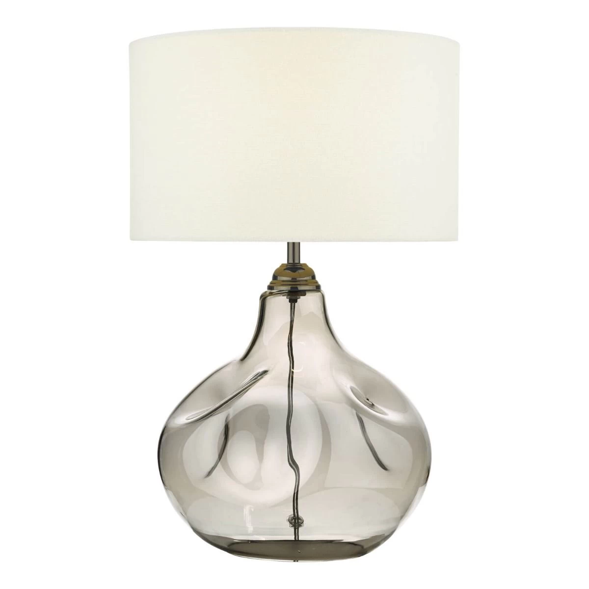 The freeform Esarosa table lamp has an organic smoked glass base in the shape of a pear, with black chrome detail.