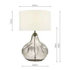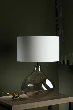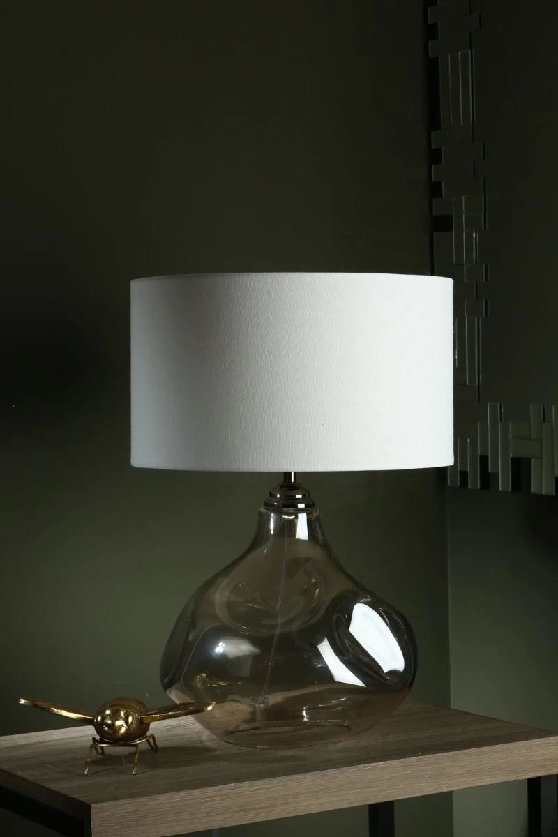 Paired with a white linen drum shade and operated by an in-line rocker switch in the discrete clear cable, this heavy table lamp will look stylish in any room. Bulb not included; takes 1 x 60W max ES screw cap GLS standard.