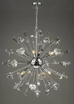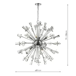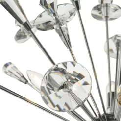 The Exodus 8 light pendant ceiling light in polished nickel and high quality crystal. 1m of chain and clear cable is included which can be adjusted on installation depending on how low your ceiling is or how high you’d like to hang the ceiling light. Crystal appears to explode from the centre of this incredible statement light