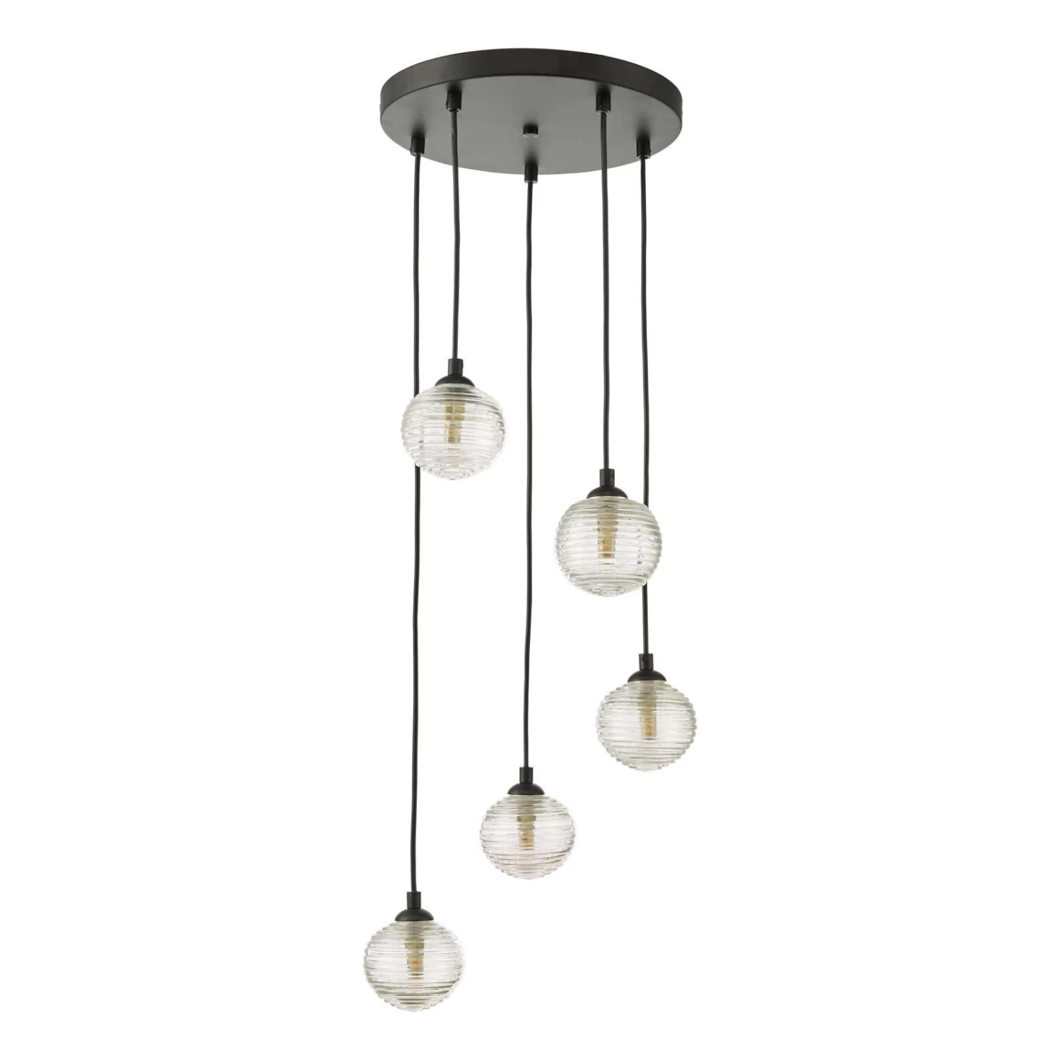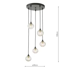 The Federico spiral cluster pendant is a minimal design in matt black with 5 spiralling glass shades of clear ribbed glass. We find it’s minimalism so versatile and refreshing, it’s just at home as a stairwell light as it is lighting a dining table or over a bed. The black fabric cable can be adjusted on installation but if you want to go very short you will need the help of an electrician.