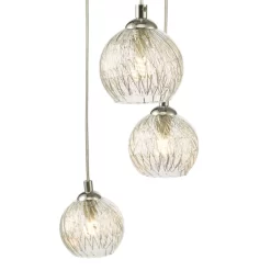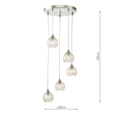The Federico spiral cluster pendant is a minimal design in polished chrome with 5 spiralling clear glass shades with wire detail. We find it’s minimalism so versatile and refreshing, it’s just at home as a stairwell light as it is lighting a dining table or over a bed. The black fabric cable can be adjusted on installation but if you want to go very short you will need the help of an electrician.