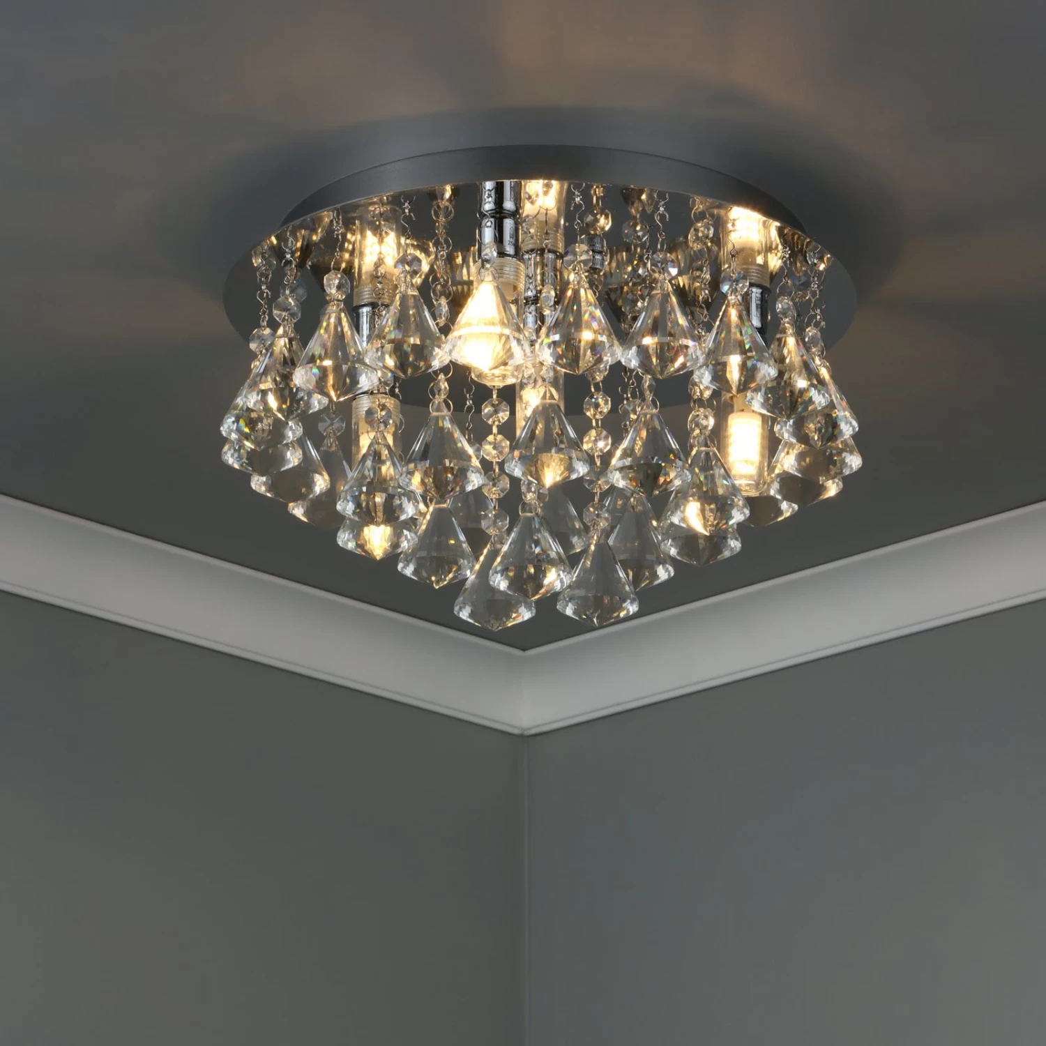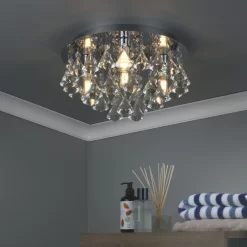This stunning Fringe ceiling light is ideal for use in the bathroom as it has a low profile and will not cause any problems with water spray. The lighting is created by the 4 lamp holders and multiple strings of the beads that are suspended within from a ceiling plate that is mirror polished to double up on the effect. The result is an exceptional piece of lighting that makes a real statement, but equally works well for contemporary or traditional settings.