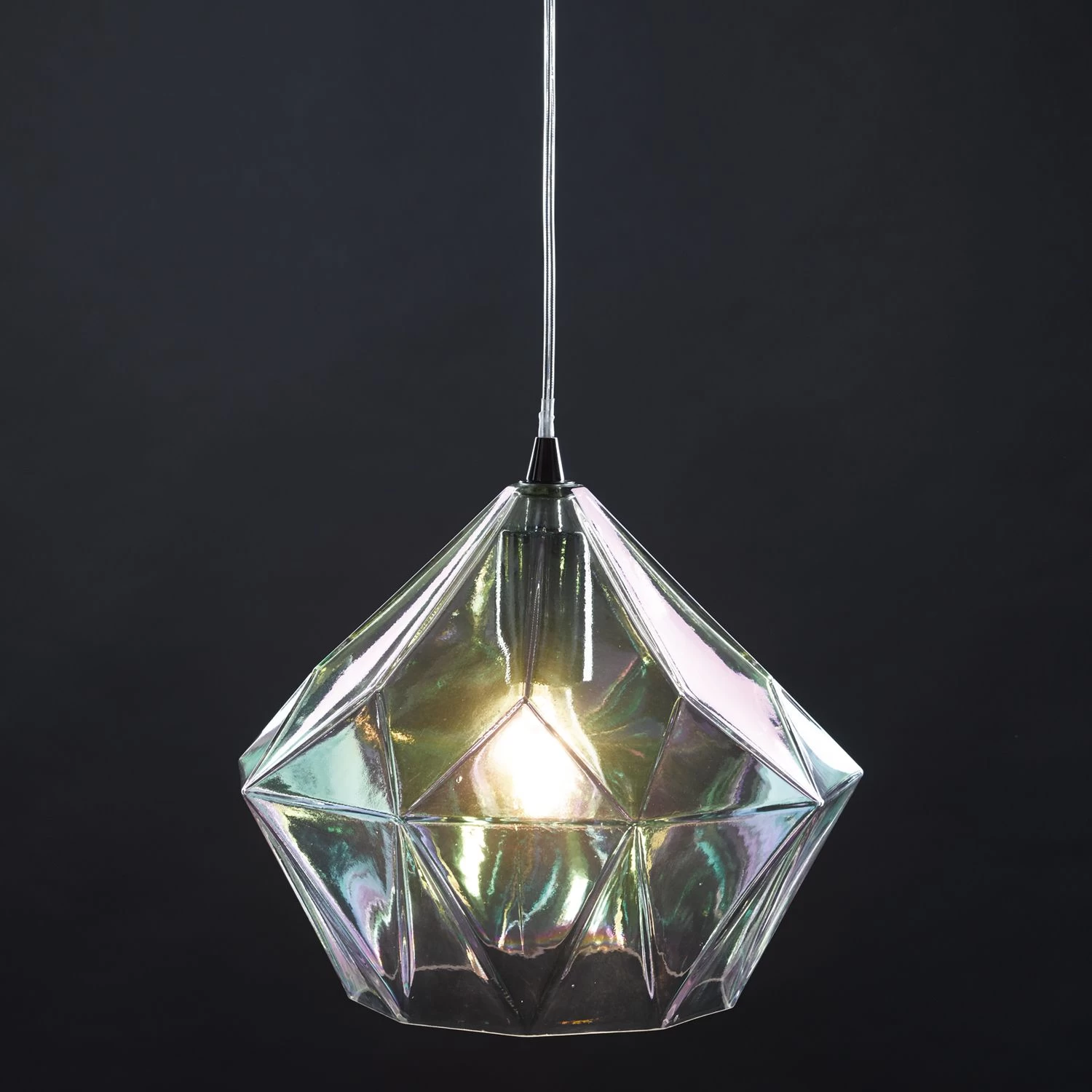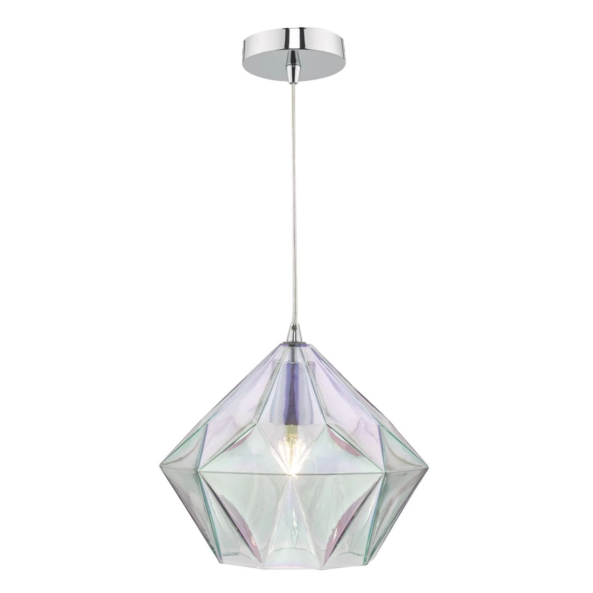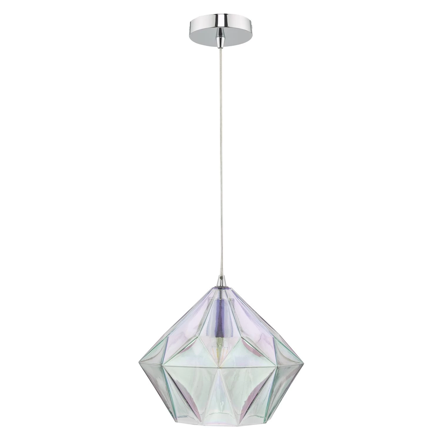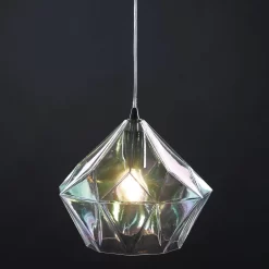 The enchanting Gaia ceiling pendant features a striking, iridised bevelled glass shade. You will enjoy the alluring colours of this iridised glass shade, which vary depending on the angle you view it from.