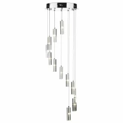 The Galileo 12lt spiral cluster pendant features a polished chrome finish and crystal glass shades. The light source is engineered to fit centrally in the crystal block shade, creating a beautiful lighting effect.