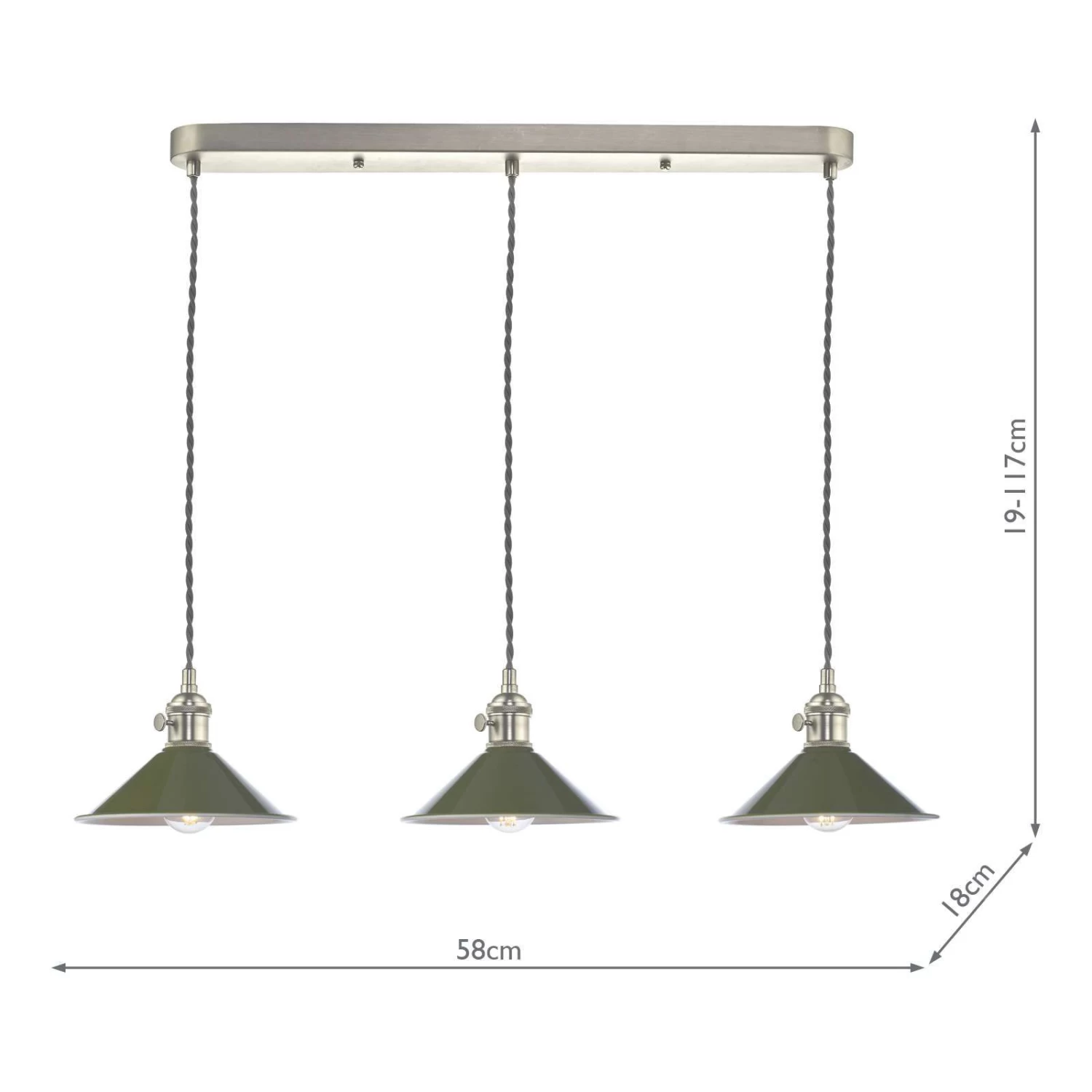 This all-metal version has a vintage-look cone shade in an earthy olive green finish and white inner, complemented by a sophisticated antique chrome finish ceiling rose and machined lamp holder.