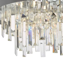 Opulent, layered, faceted coffin crystal is illuminated by six lights, creating a beautiful prism effect throughout the Halle flush ceiling light. The flush style of the Halle ceiling light means you can still add opulence to a room even if the ceiling height is low.