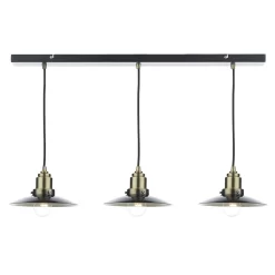 The two-tone retro styled HANNOVER 3lt Bar Pendant has a black and antique brass ceiling plate and shade.