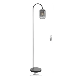 The Idra Floor Lamp from dar lighting offers an elegant and contemporary lighting solution for your home. The Idra floor lamp features an oversize J-arm and matte black finish with smoked ribbed glass shade. The Idra floor lamp features a foot switch for easy on/off operation and uses a single E27 (ES) bulb (not supplied), We recommend using LED filament lamps from our range of LED bulbs