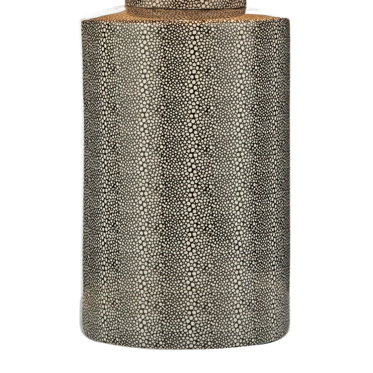 Striking and elegant this shagreen pattern Chinese barrel shaped ceramic base adds style to any interior.