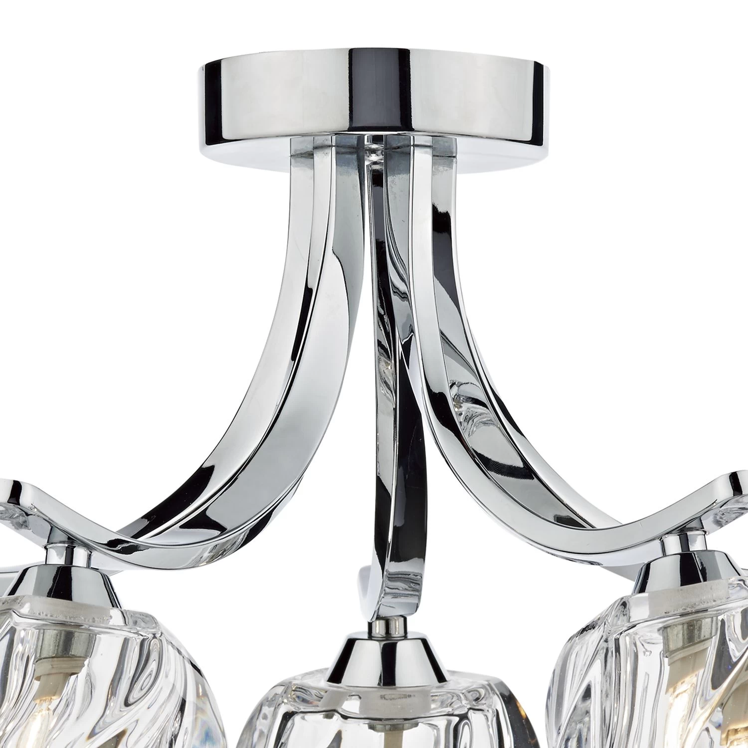 With compact dimensions the IVY range is perfect for lower ceilings. Featuring a beautiful free form crystal glass on a gently twisting polished chrome arm the Ivy range delivers an exceptional light output for its size.