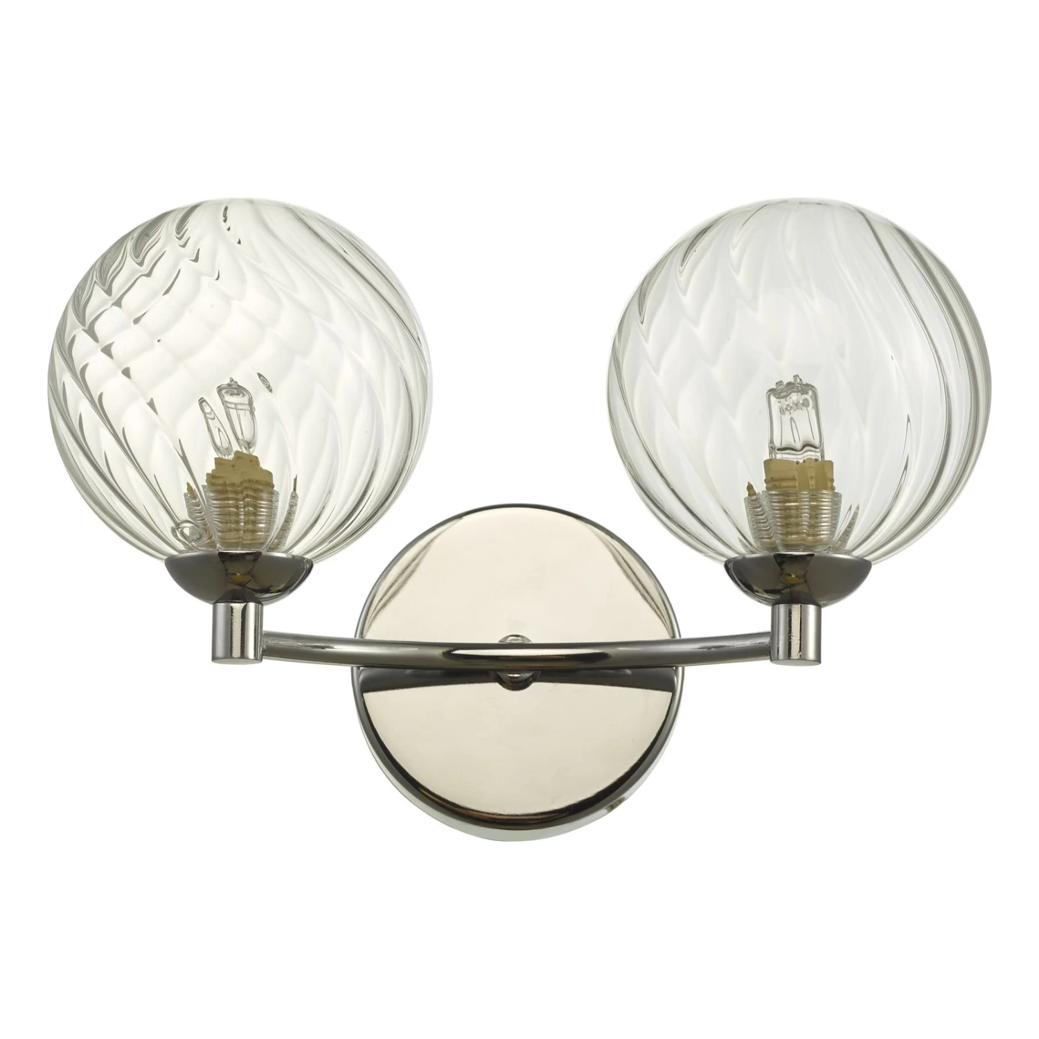 The IZZY 2lt wall light in a timeless polished chrome finish with twisted clear glass shades. It’s simple design makes this a fitting that will work in almost all contemporary spaces.