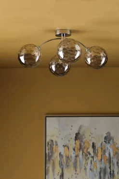 The IZZY 4lt semi flush in a timeless polished chrome finish with large smoked dimple glass shades.