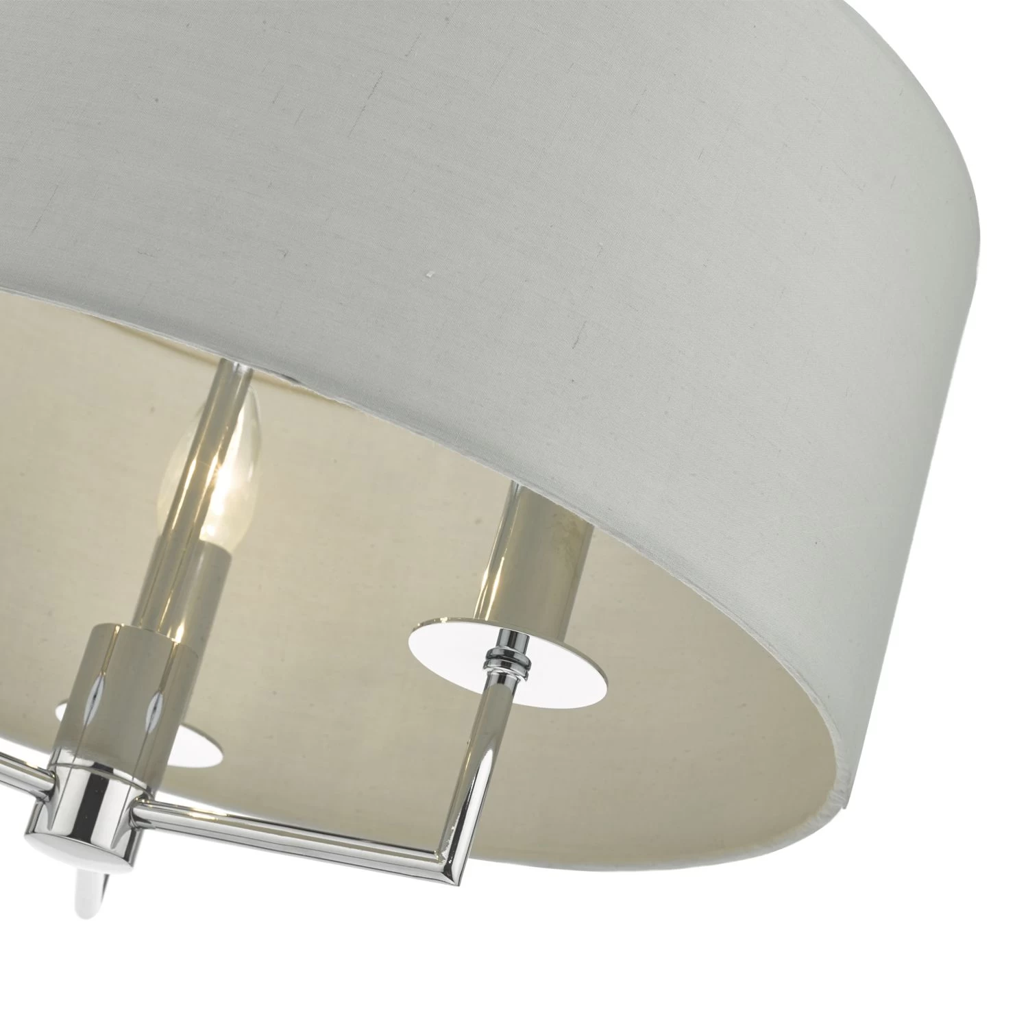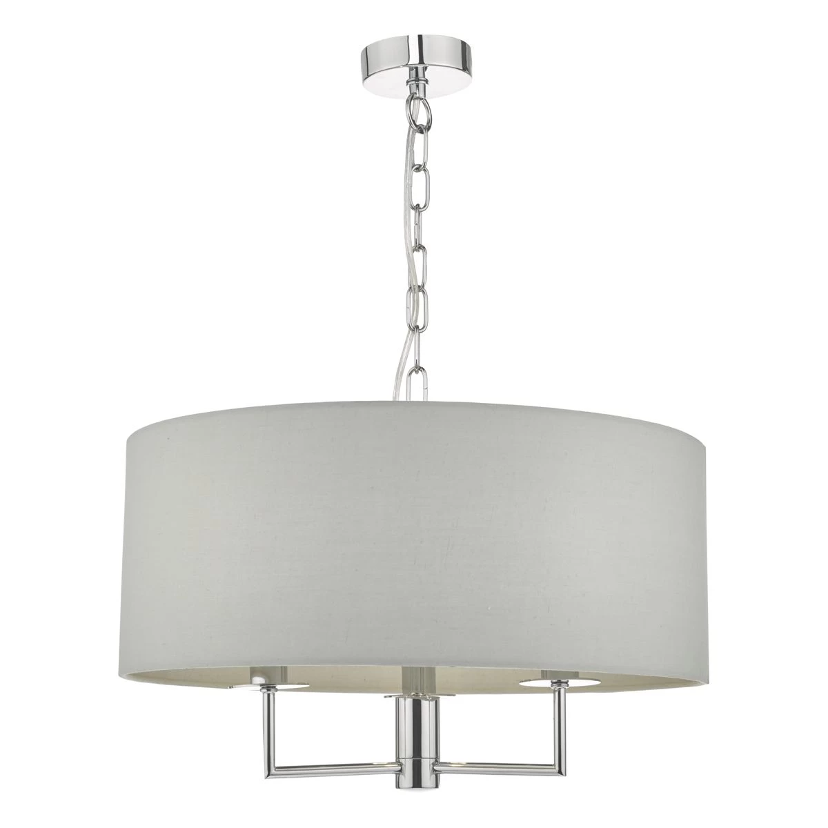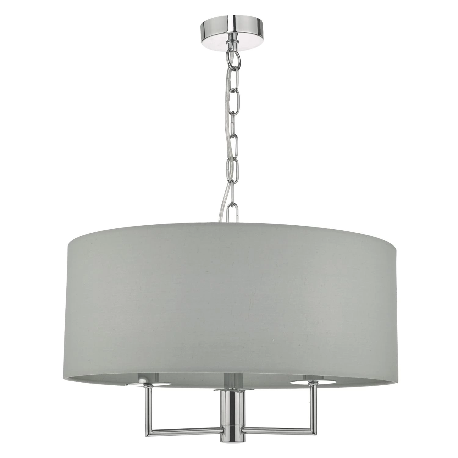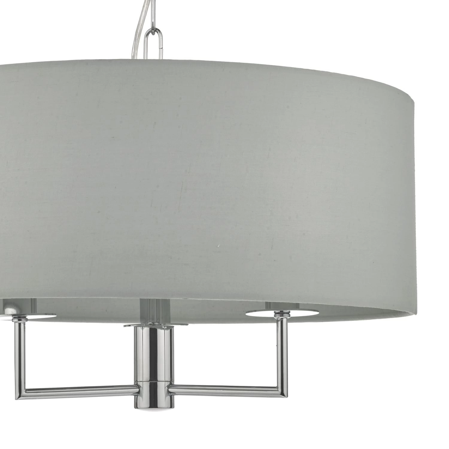 The understated Jamelia shadelier features polished chrome detailing; complete with a grey cotton shade and matching lining.