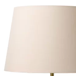 Sold complete with a faux silk tapered drum shade in ecru with matching lining.