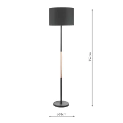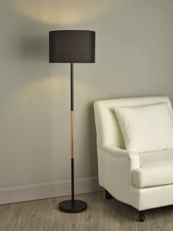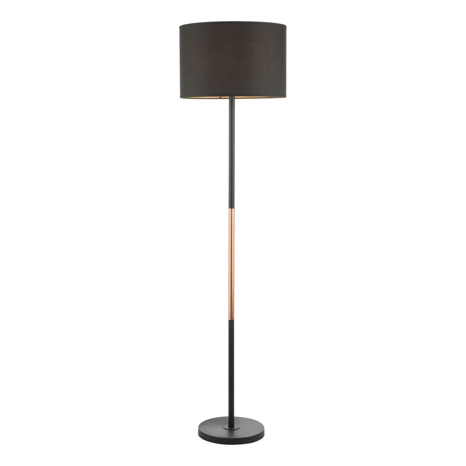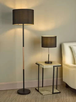 The Kelso floor lamp is simple and elegant with a mix of matt black and contrasting polished copper stem, complete with a matching black cotton shade. Fitted with an foot operated switch for ease of us.