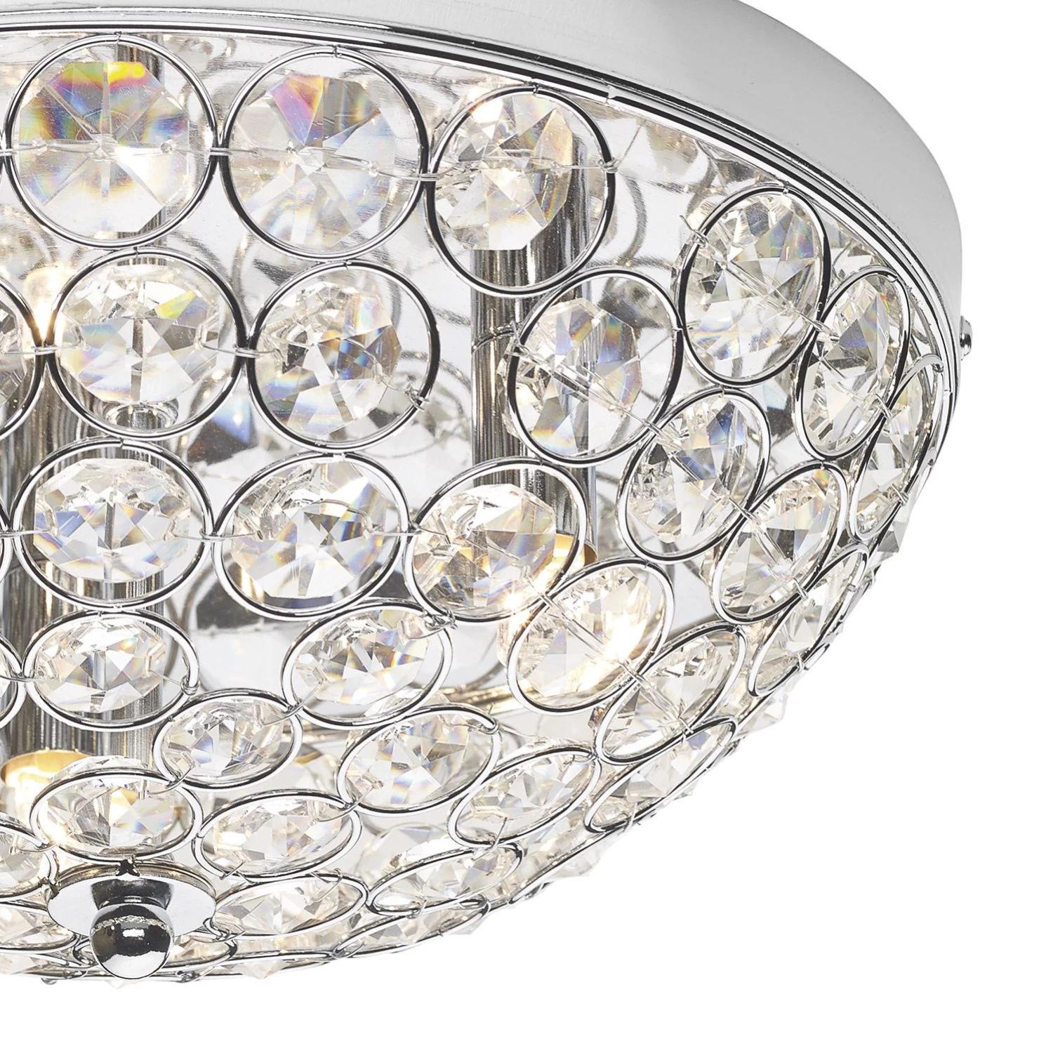 KYRIE – contemporary style faceted crystal beads in a polished chrome frame are brought to sparkling life by 3 x G9 lamps. This delicate looking ceiling flush looks equally great with LED energy saving lamps.