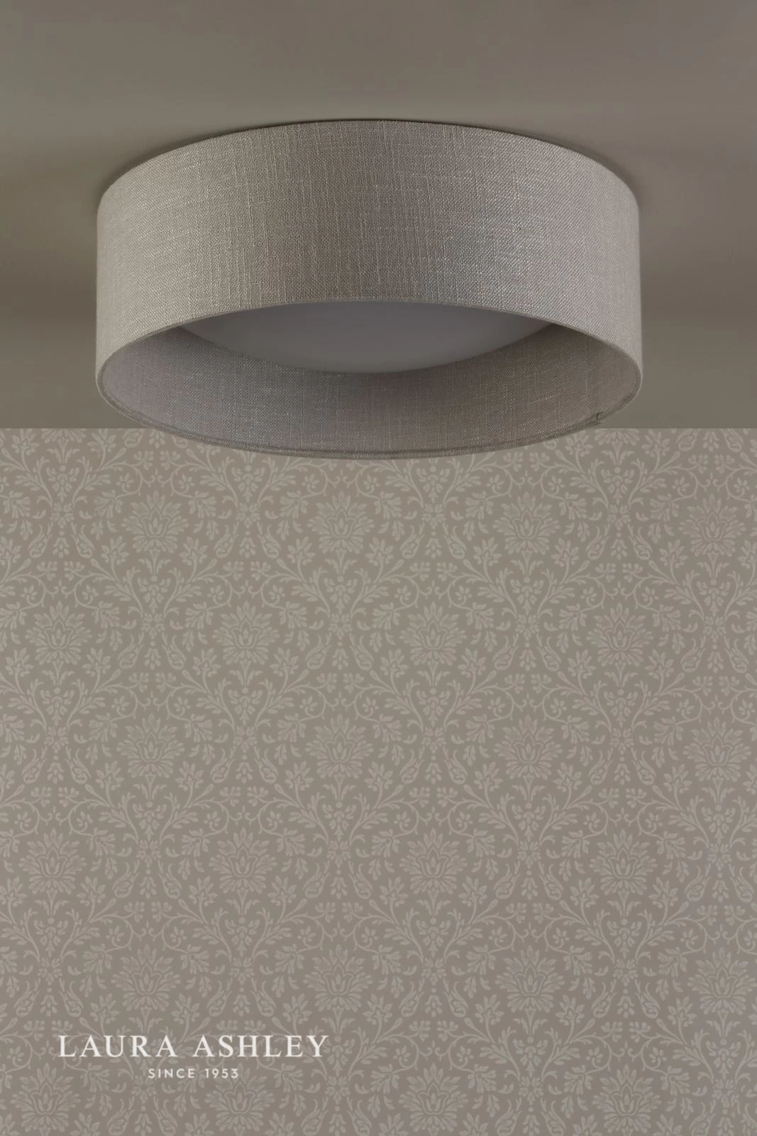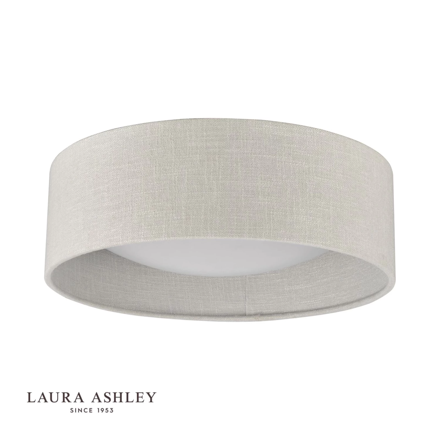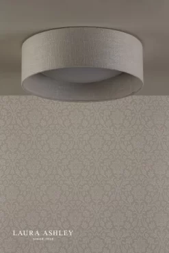 The super-smart Laura Ashley Bacall lightshade will help you up the game with your lighting. Incredibly versatile, you’ll want to use this in a number of different rooms: bedrooms, corridors and landings, hallways and living rooms. A simple slubbed linen shallow drum shade sits neatly against the ceiling. The Bacall features a concave dome diffuser inset into the shade. It is very easy to attach in a twist-lock action. The integral diffuser acts to soften the light emitted, making this full flush light ceiling fitting an attractive proposition for your home.